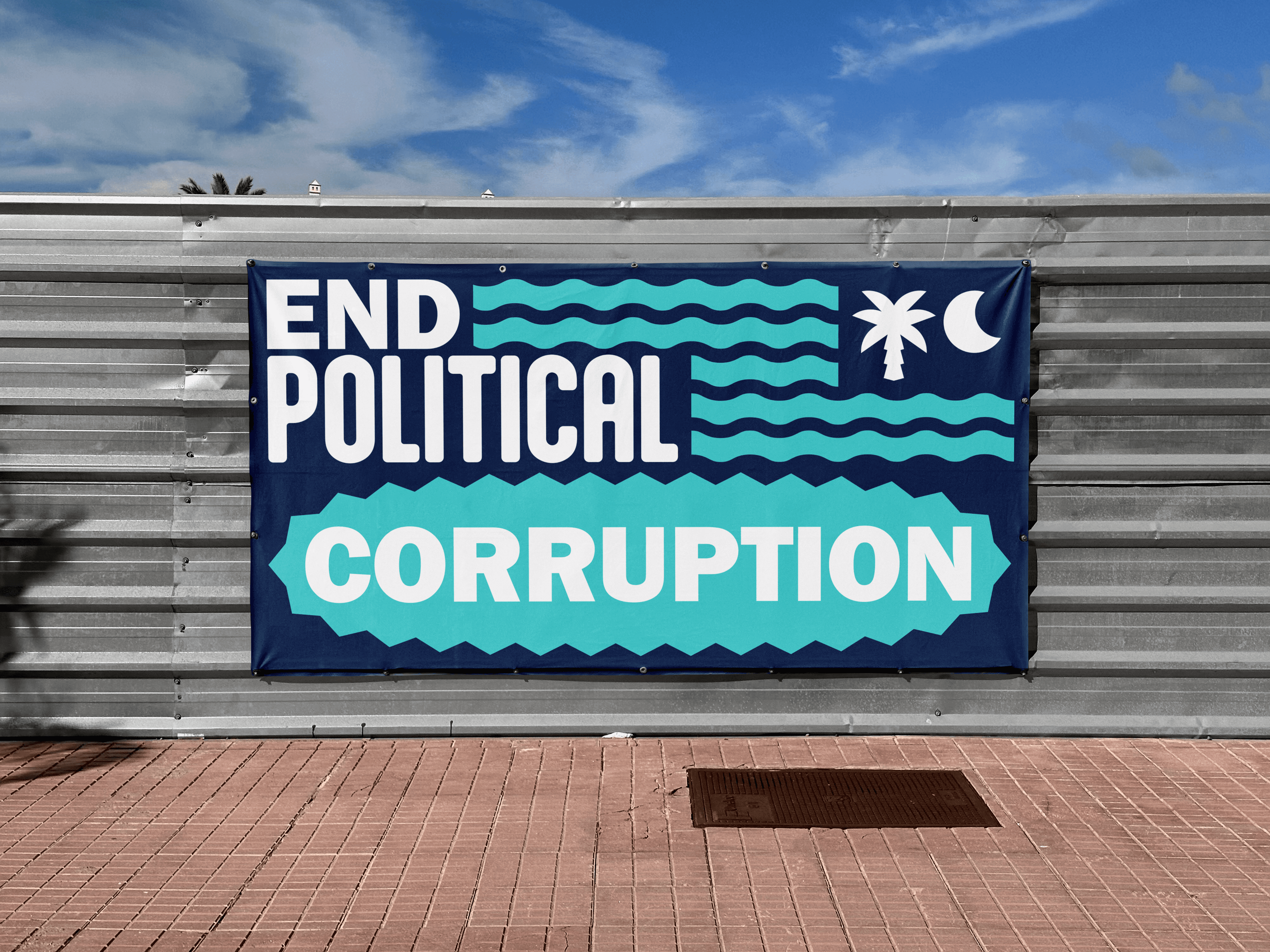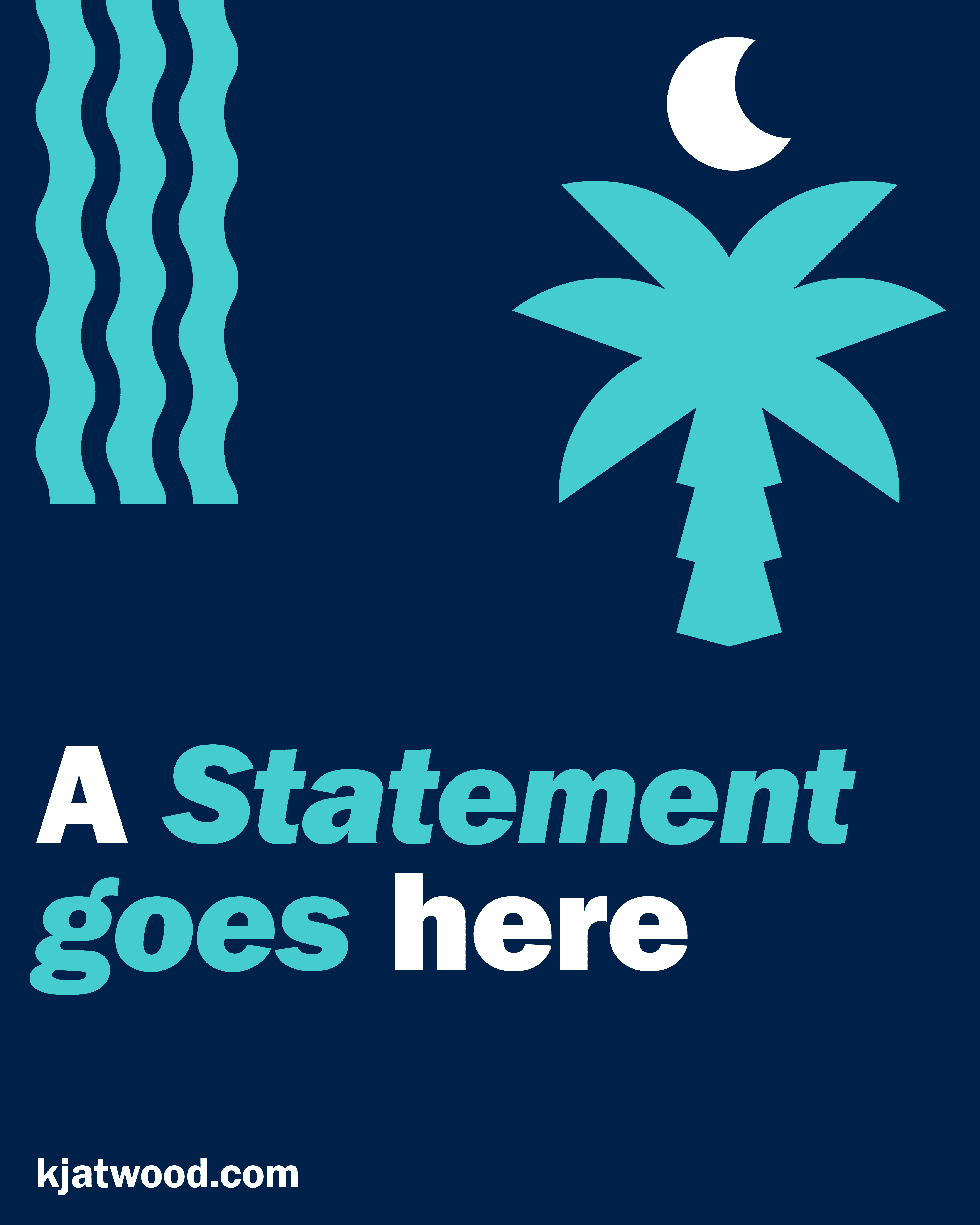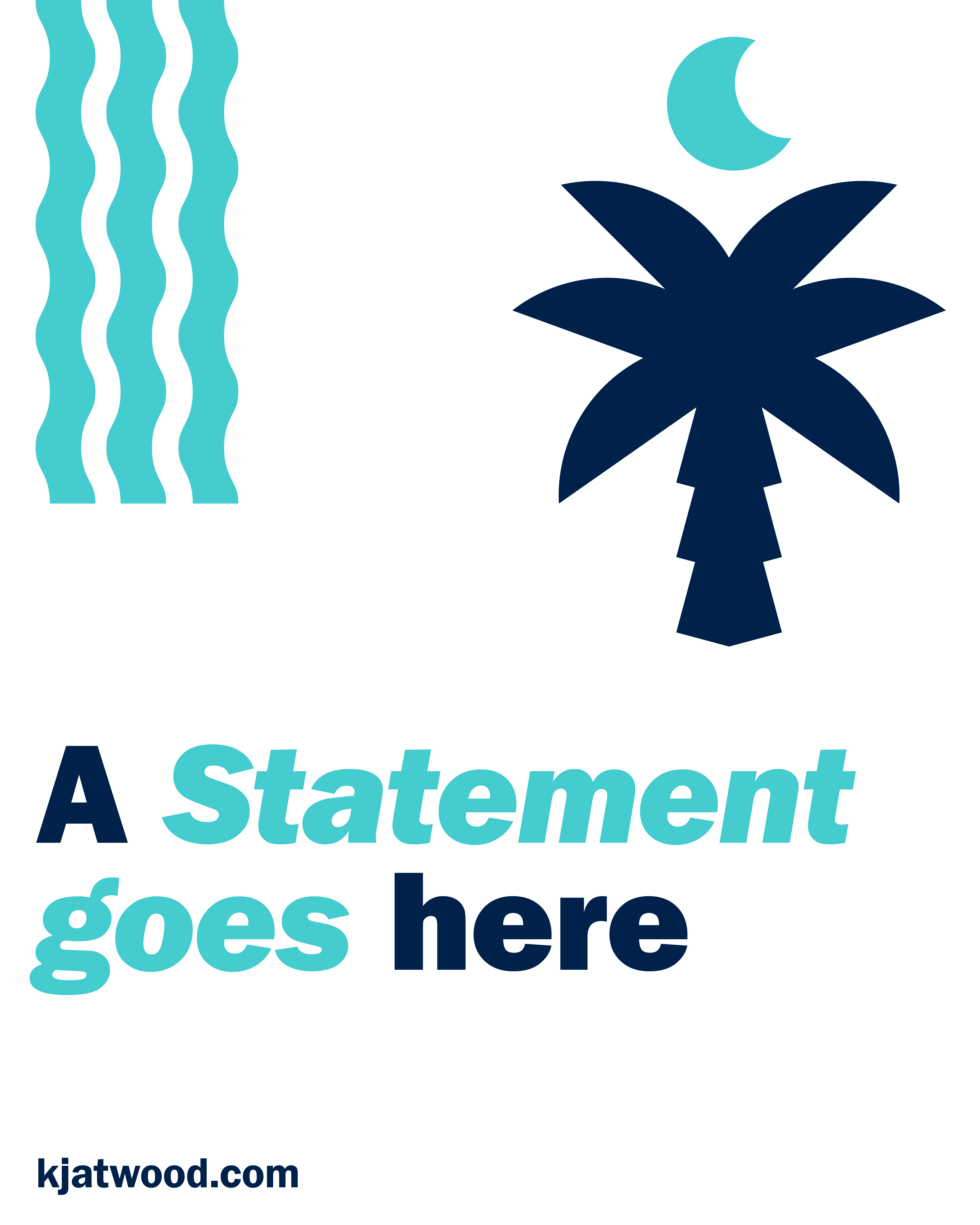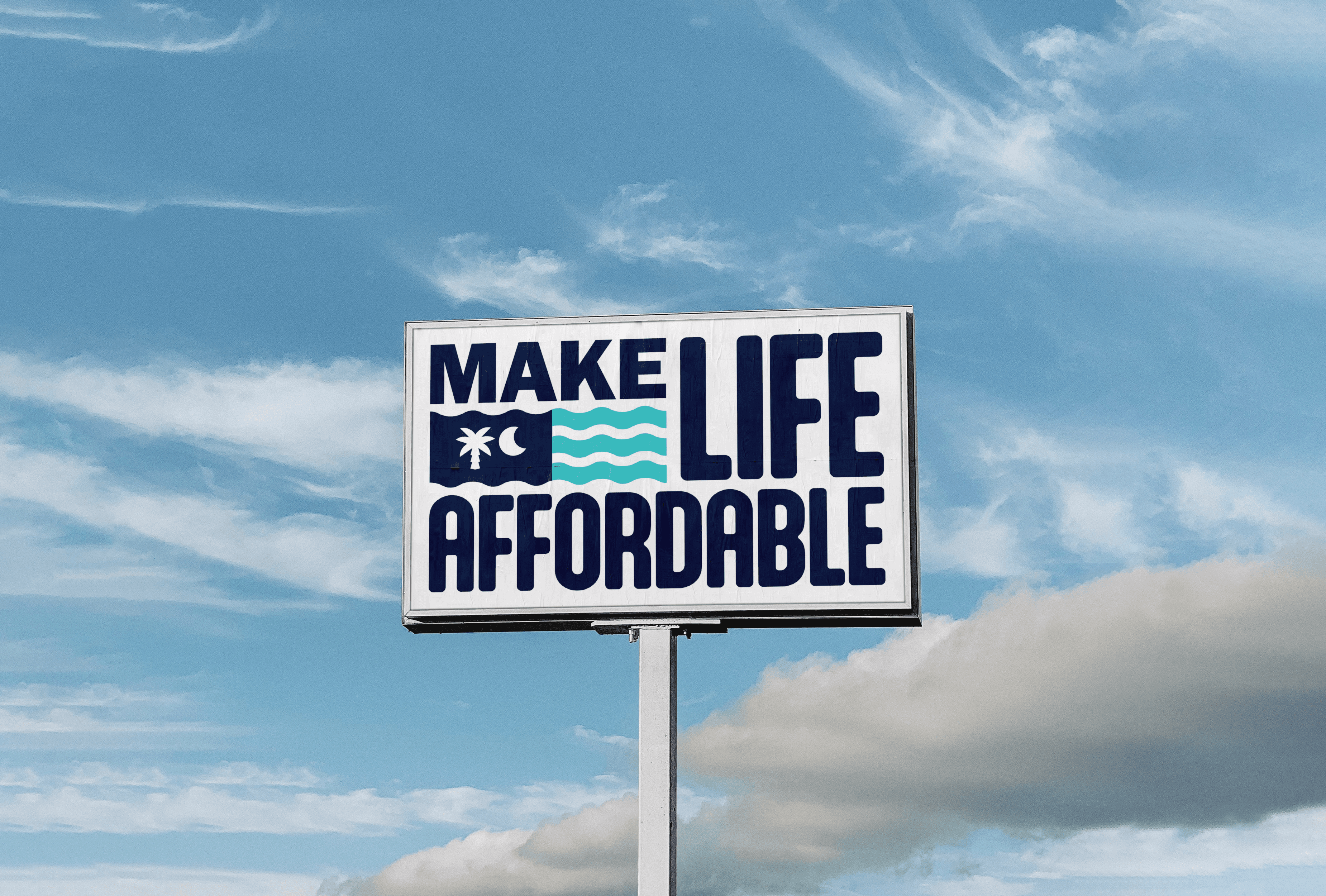 Early in the process, the client expressed interest in a more traditional campaign logo variation, reflecting the common format of a candidate’s name enclosed within a rectangular frame, accompanied by the subline “Running for ______.” In response, a version of this format was developed, incorporating curved wave elements to reinforce South Carolina’s coastal identity. Additional logo variations were also created for use across different contexts, all integrating the palm tree and crescent moon as the main symbols.